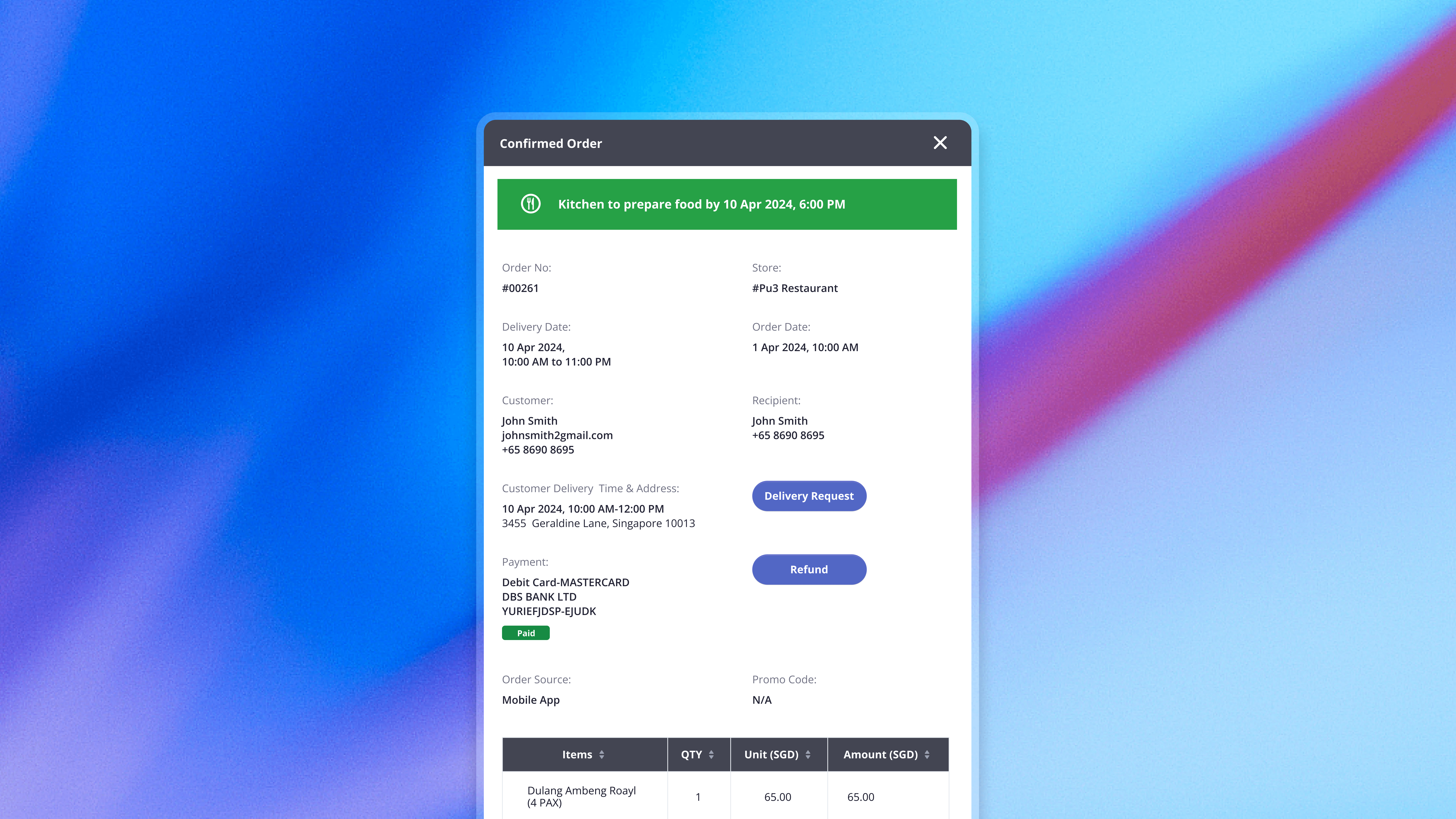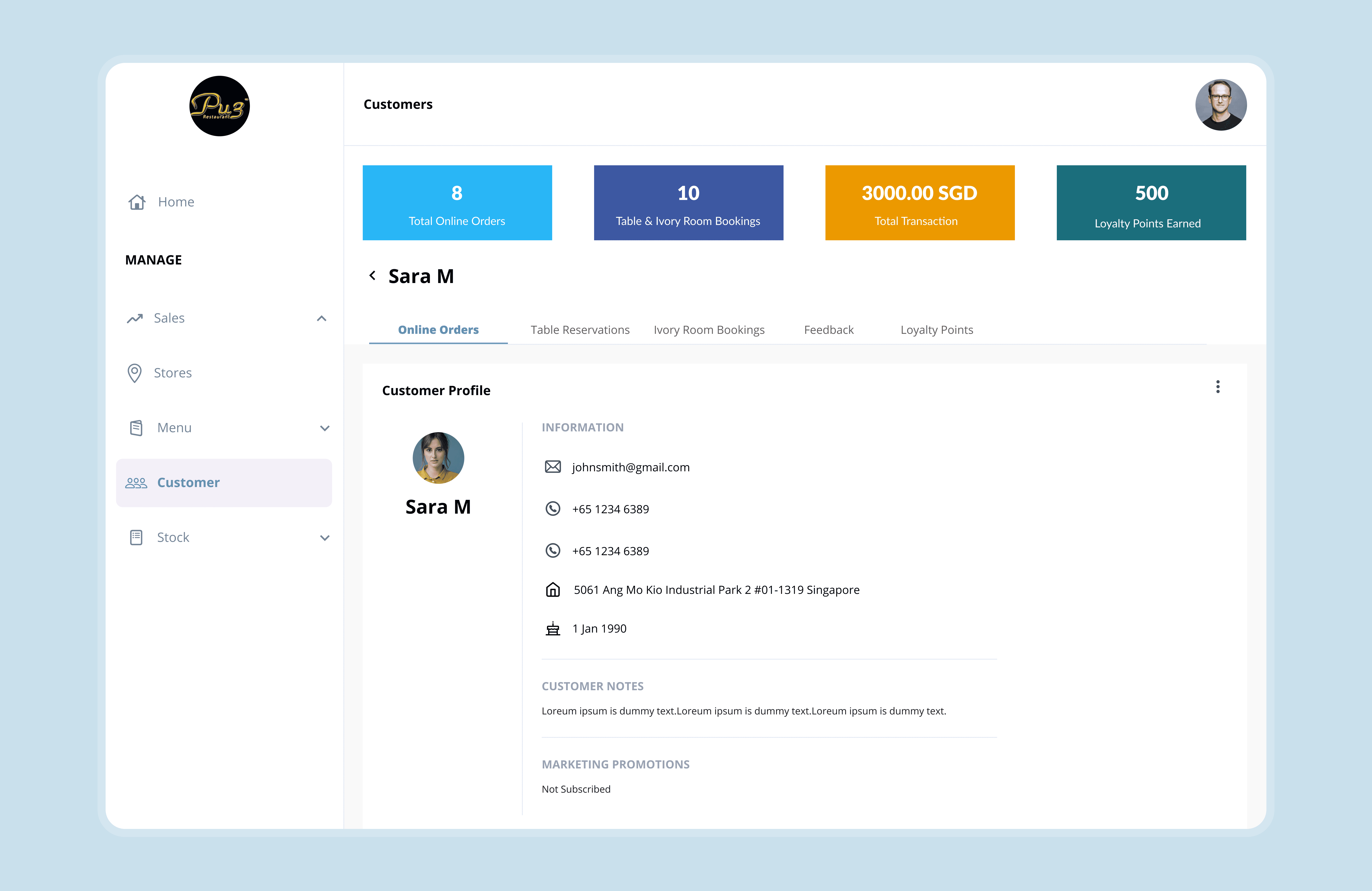 Transforming restaurant operations through a web app for PU3 Singapore.